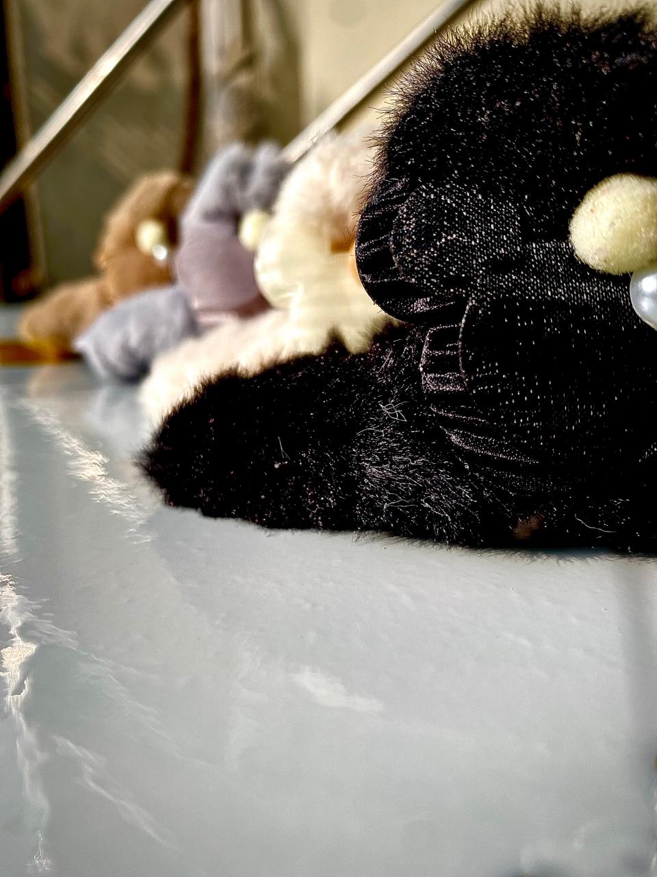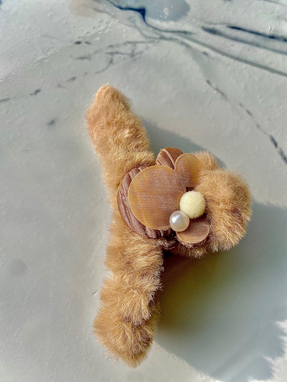 Add a touch of elegance with this black velvet hair claw, featuring soft faux fur texture and chic pearl accents – perfect for cozy, stylish hairstyles.