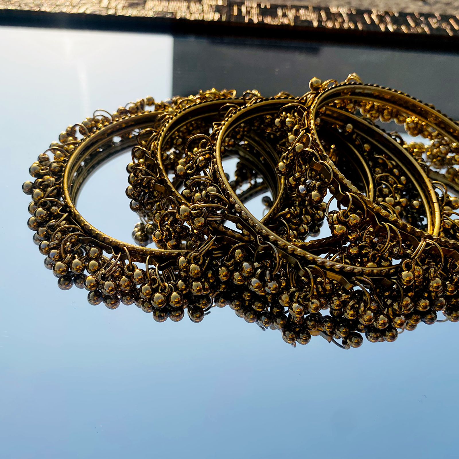 A stunning set of traditional ghungroo bangles, designed to offer both visual elegance and rhythmic charm.